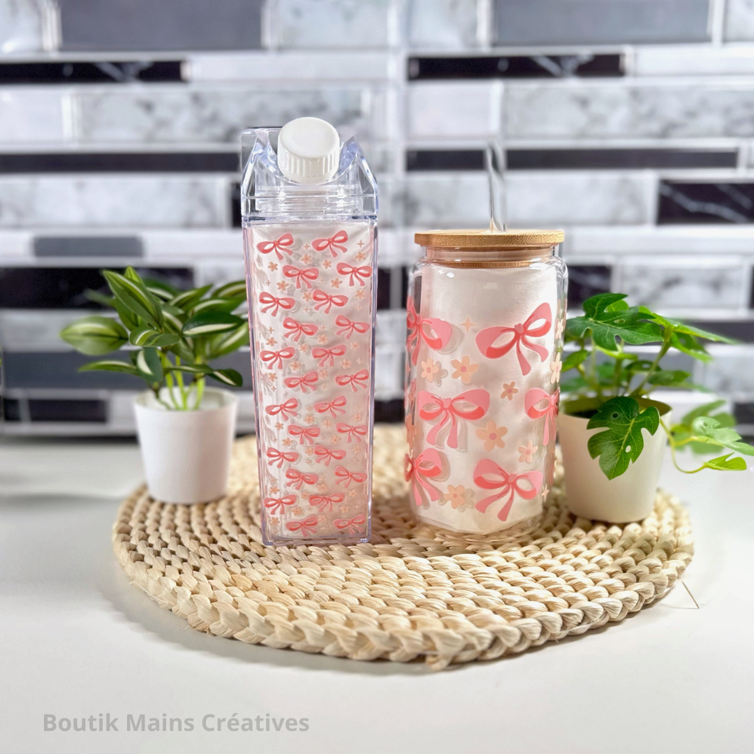 Ensemble Verre à café 16 oz et bouteille style carton lait 17 oz coquette rose et marguerites, idée cadeau