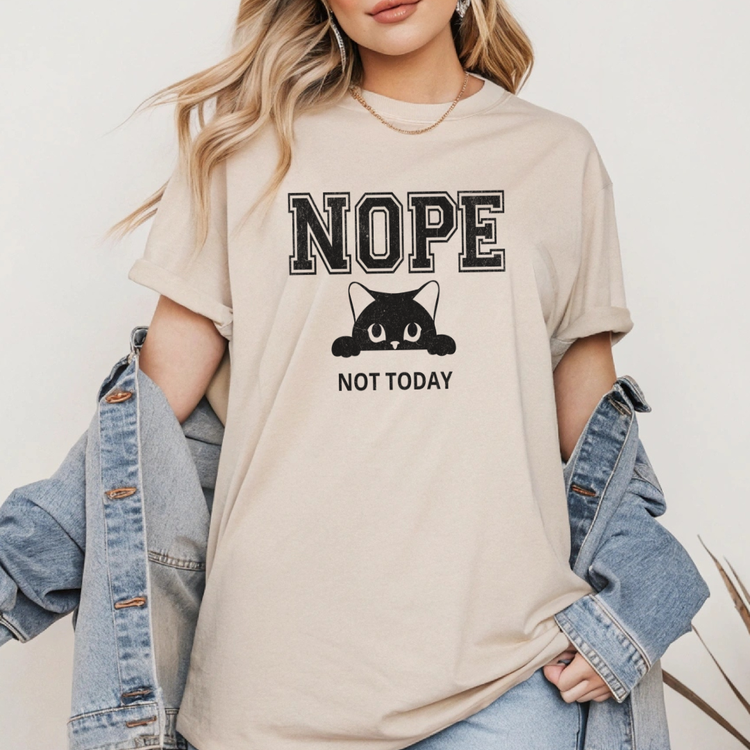 Funny and Sarcastic Grunge College Style T-Shirt, Nope Not Today English Version
