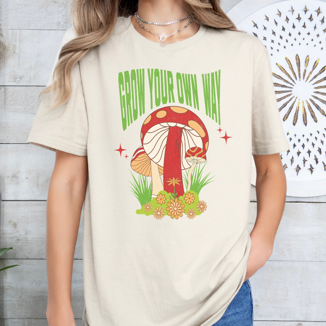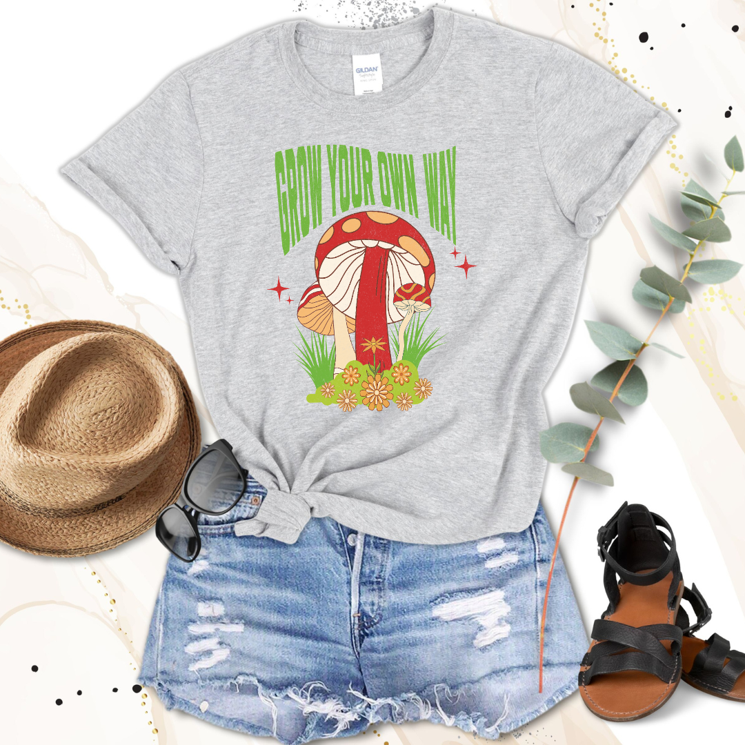 Discover our Groovy, Grunge Mushroom Style T-shirt, perfect for nature lovers! This aesthetic and magical mushroom sweater is ideal for a casual look at home or at the cottage. Let yourself be enchanted by its funny mushroom patterns and bring a touch of fantasy to your wardrobe.