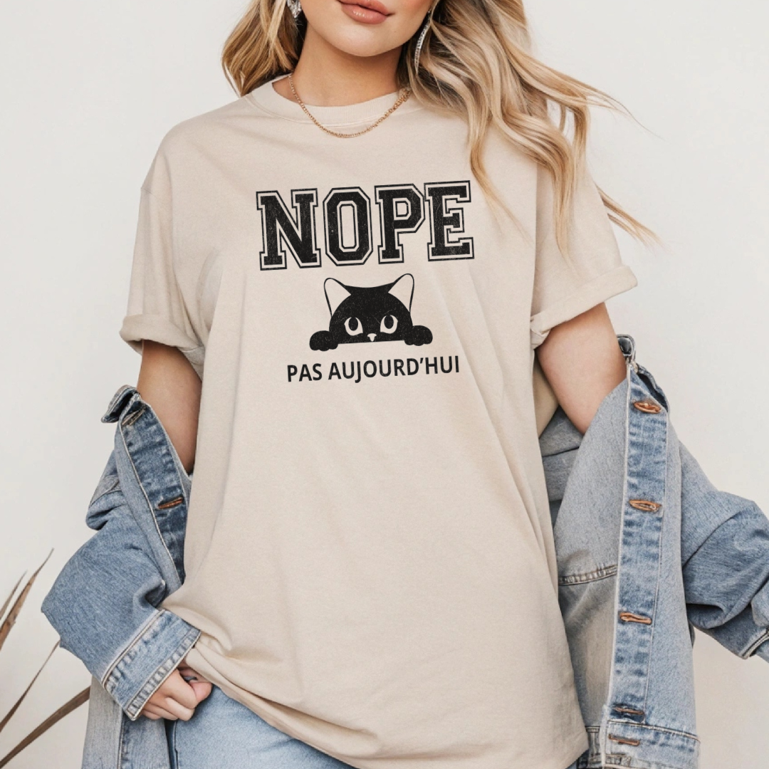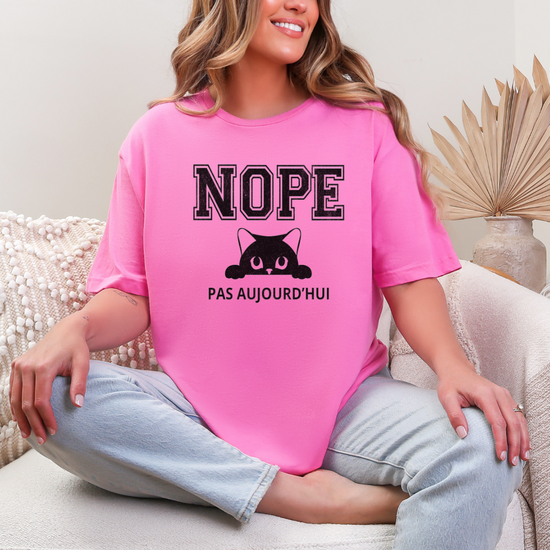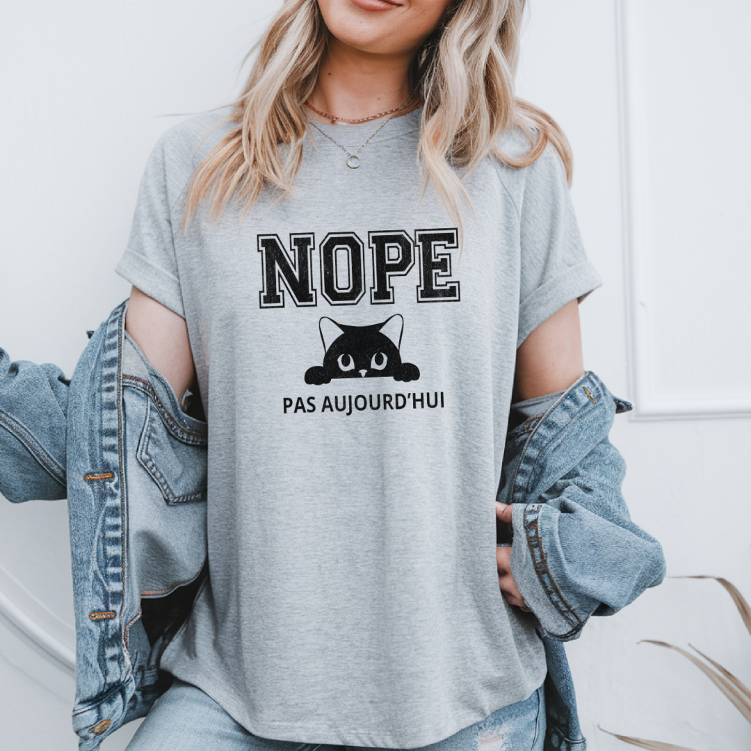 Funny and Sarcastic Grunge College Style T-Shirt, Nope Not Today french version