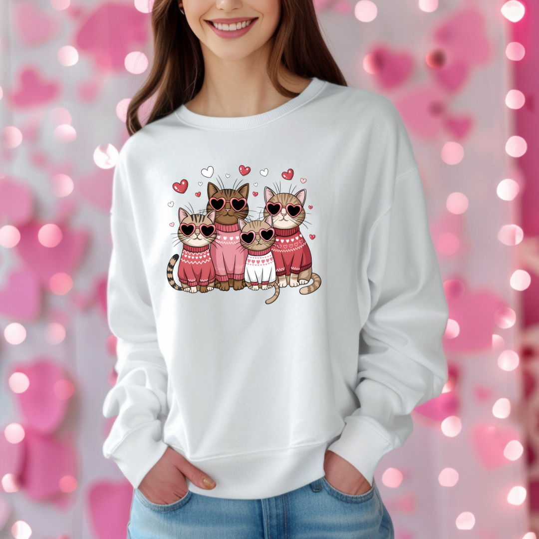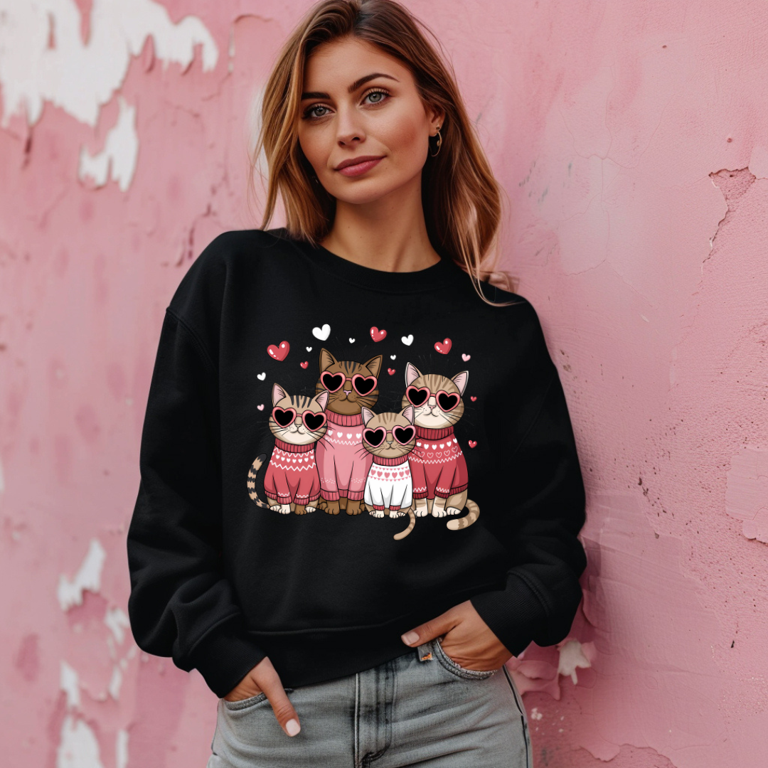 Célébrez l’amour et votre passion pour les chats avec ce chandail adorablement félin! 🐾💕 Notre design unique met en scène de mignons chats de Saint-Valentin, entourés de détails romantiques pour faire fondre le cœur de tout amoureux des félins. Parfait pour une tenue décontractée ou un cadeau attentionné, ce chandail allie confort et style.