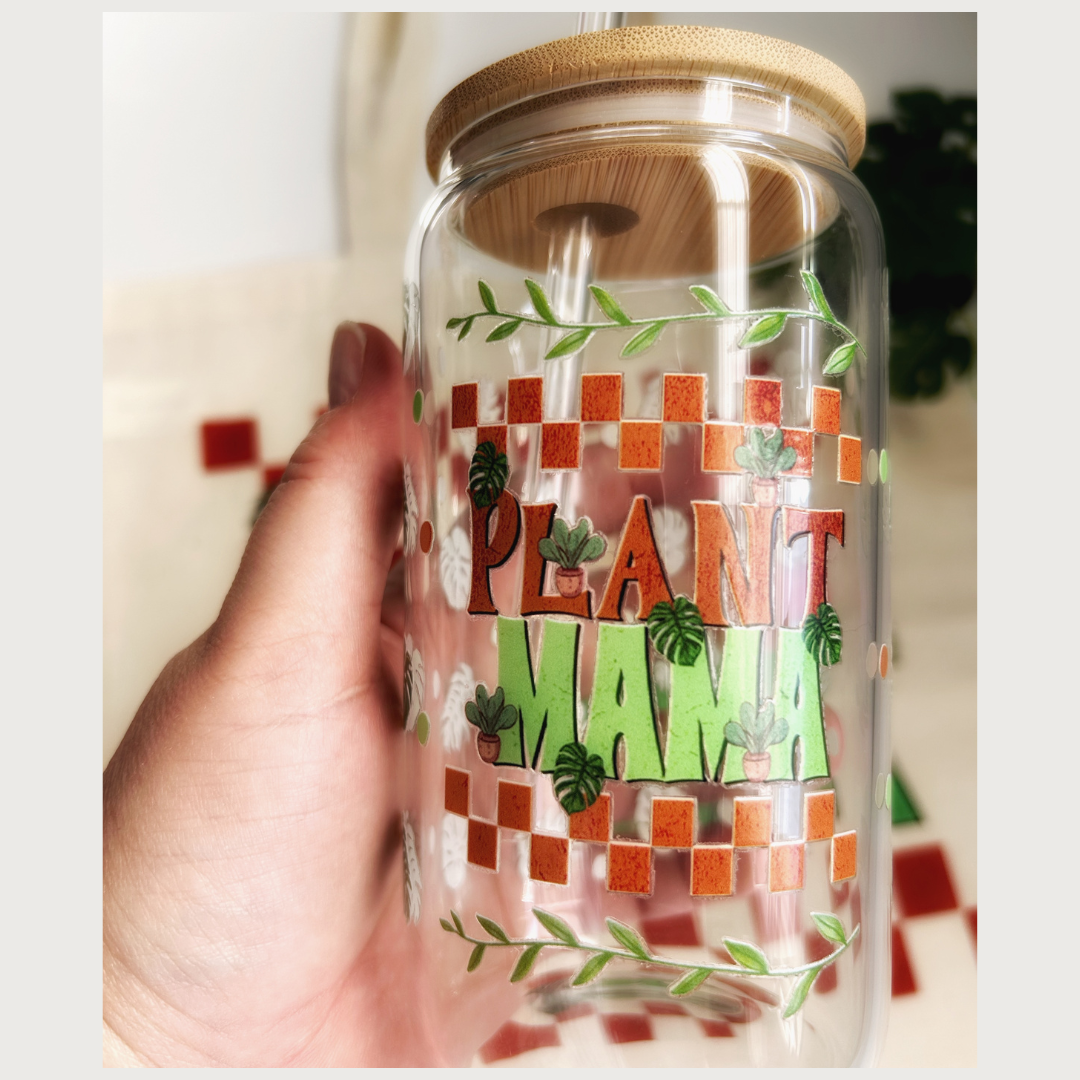 Tasse en verre claire de 16 onces comprenant un couvercle en bambou et une paille en verre, ce qui en fait le compagnon idéal pour déguster votre boisson favorite.