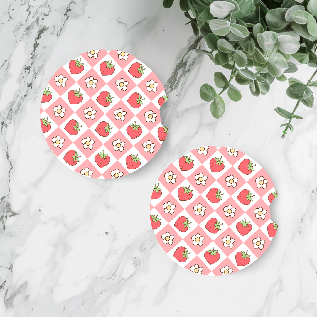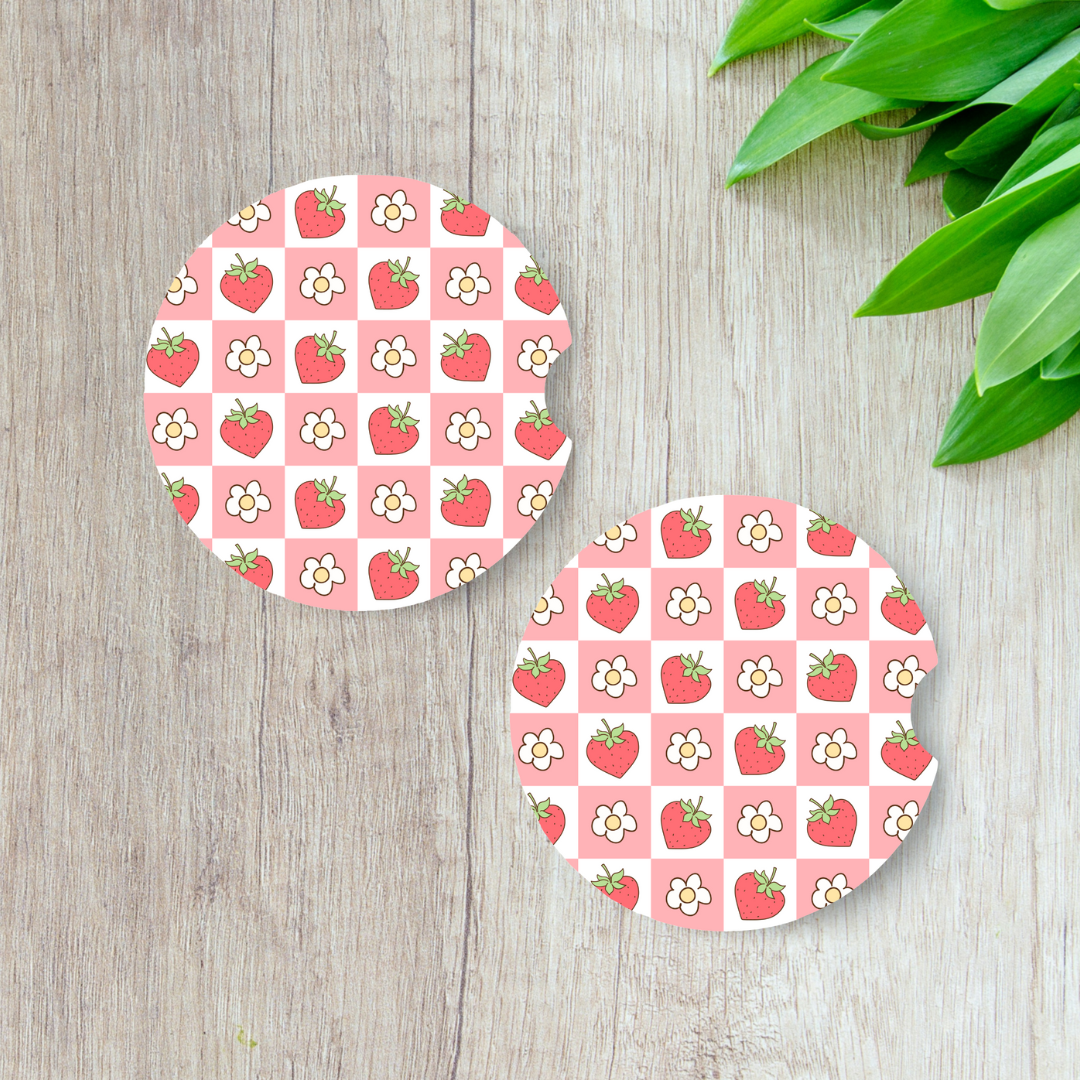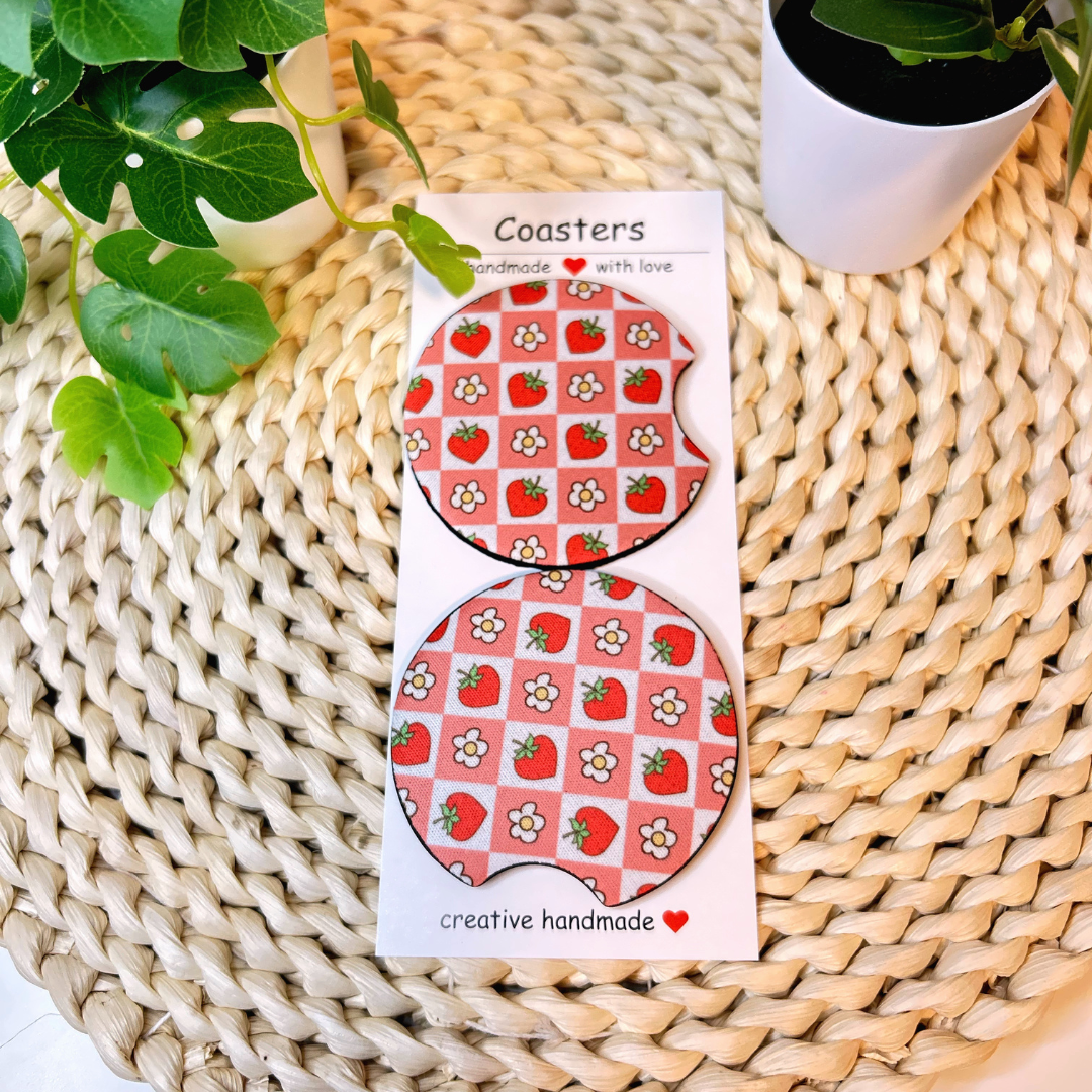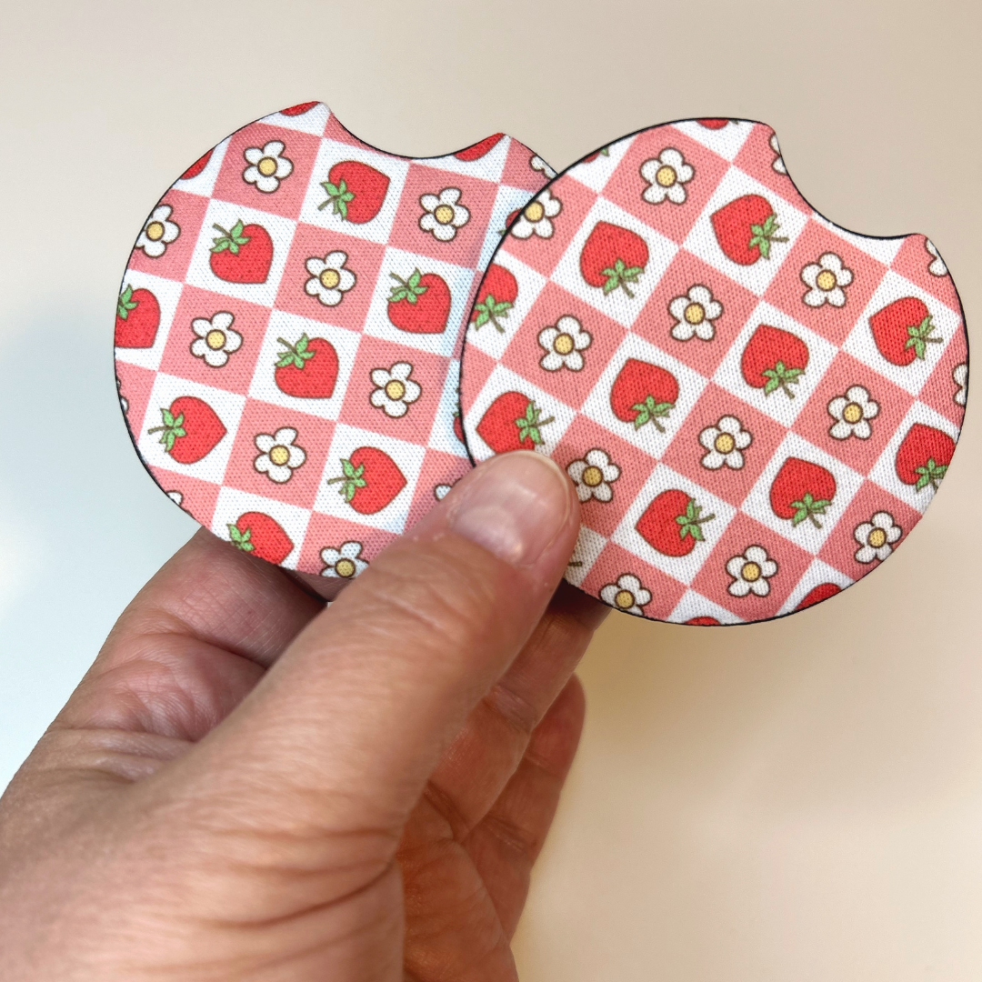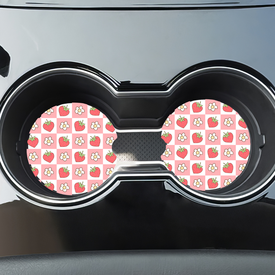 đŒđAjoutez une touche de douceur Ă lâintĂ©rieur de votre voiture avec ce sous-verre en NĂ©oprĂšne au motif craquant de fraises et petites fleurs! Son fond rose Ă carreaux donne une allure vintage kawaii irrĂ©sistible tout en protĂ©geant votre porte-gobelet des Ă©claboussures et saletĂ©s.