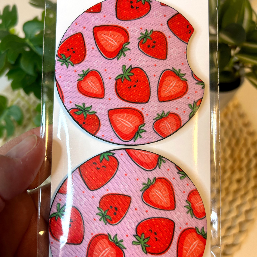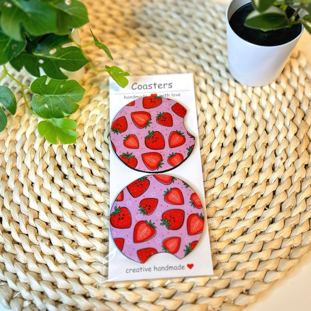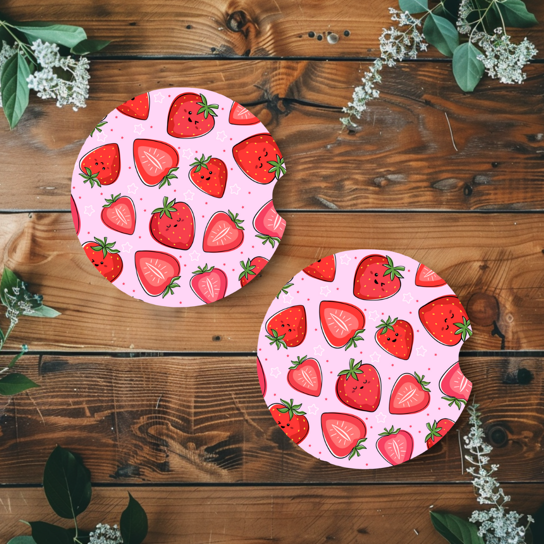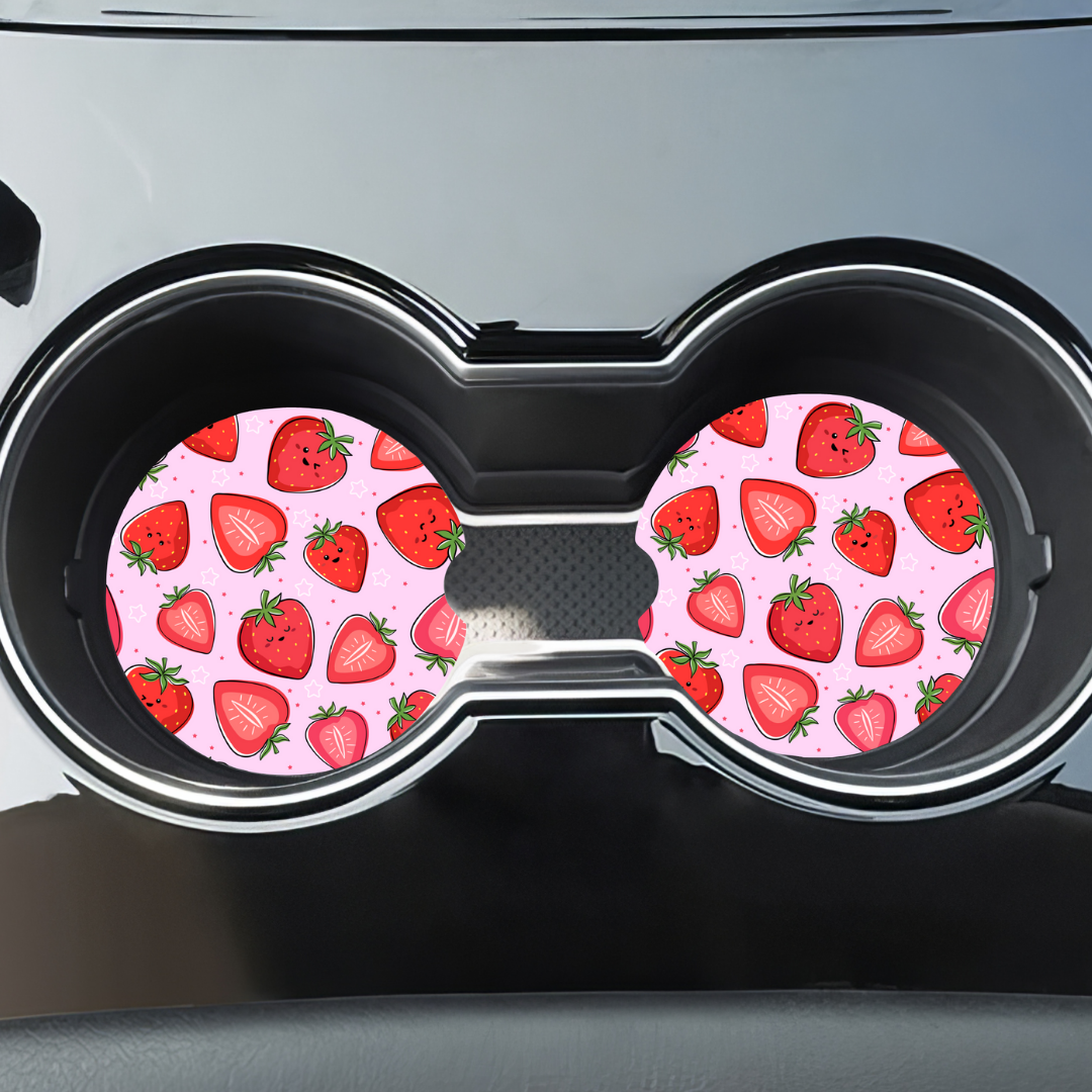 Sous-verres pour auto de fraises, accessoires de voiture, cadeau pour voiture neuve