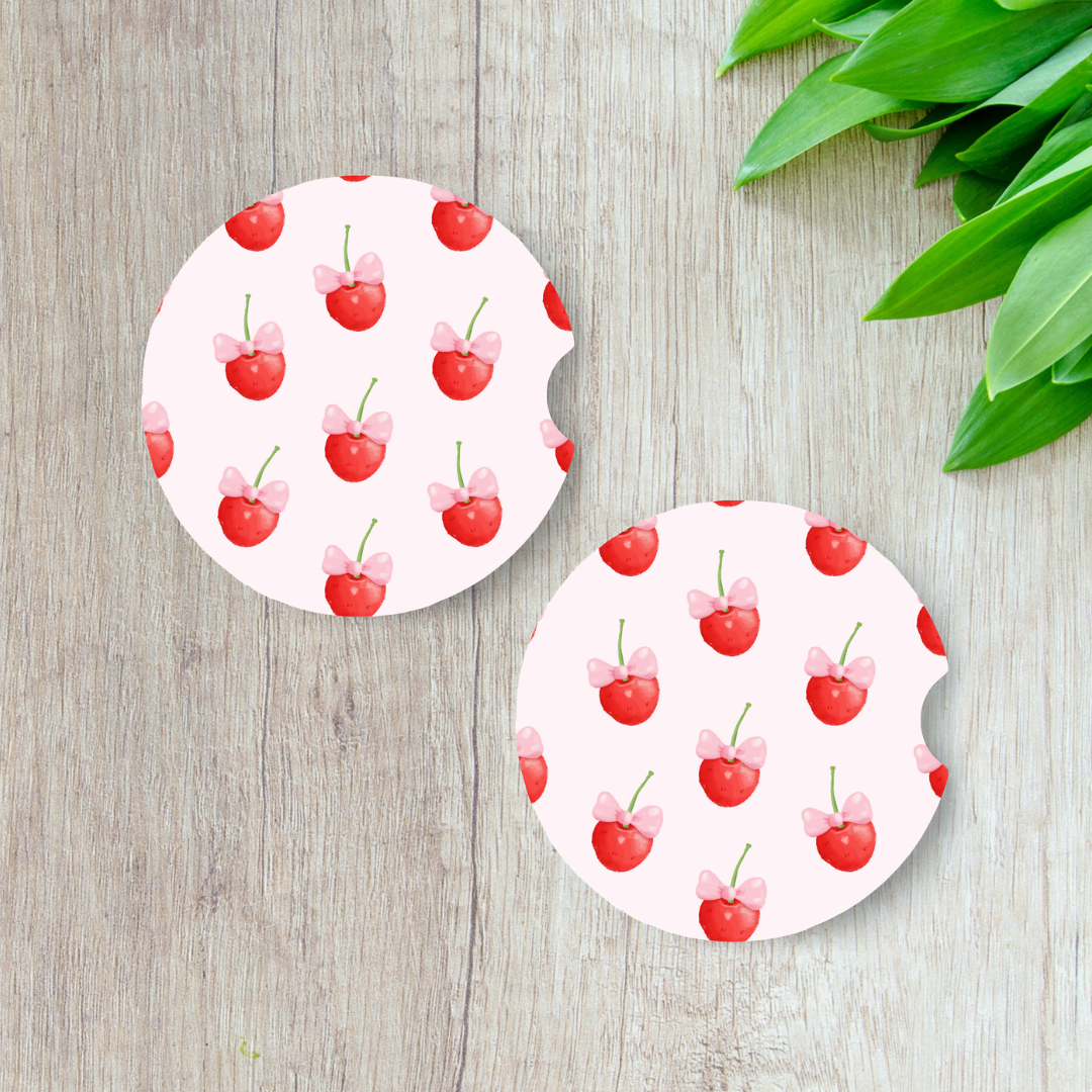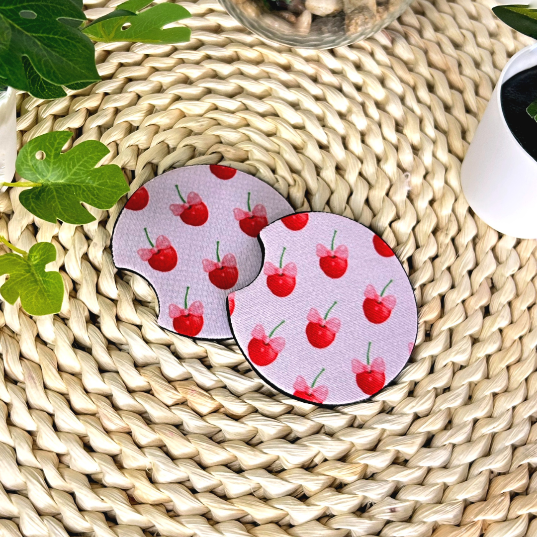 Sous-verres motif cerises coquettes pour auto, Cadeau pour amoureux des cerises