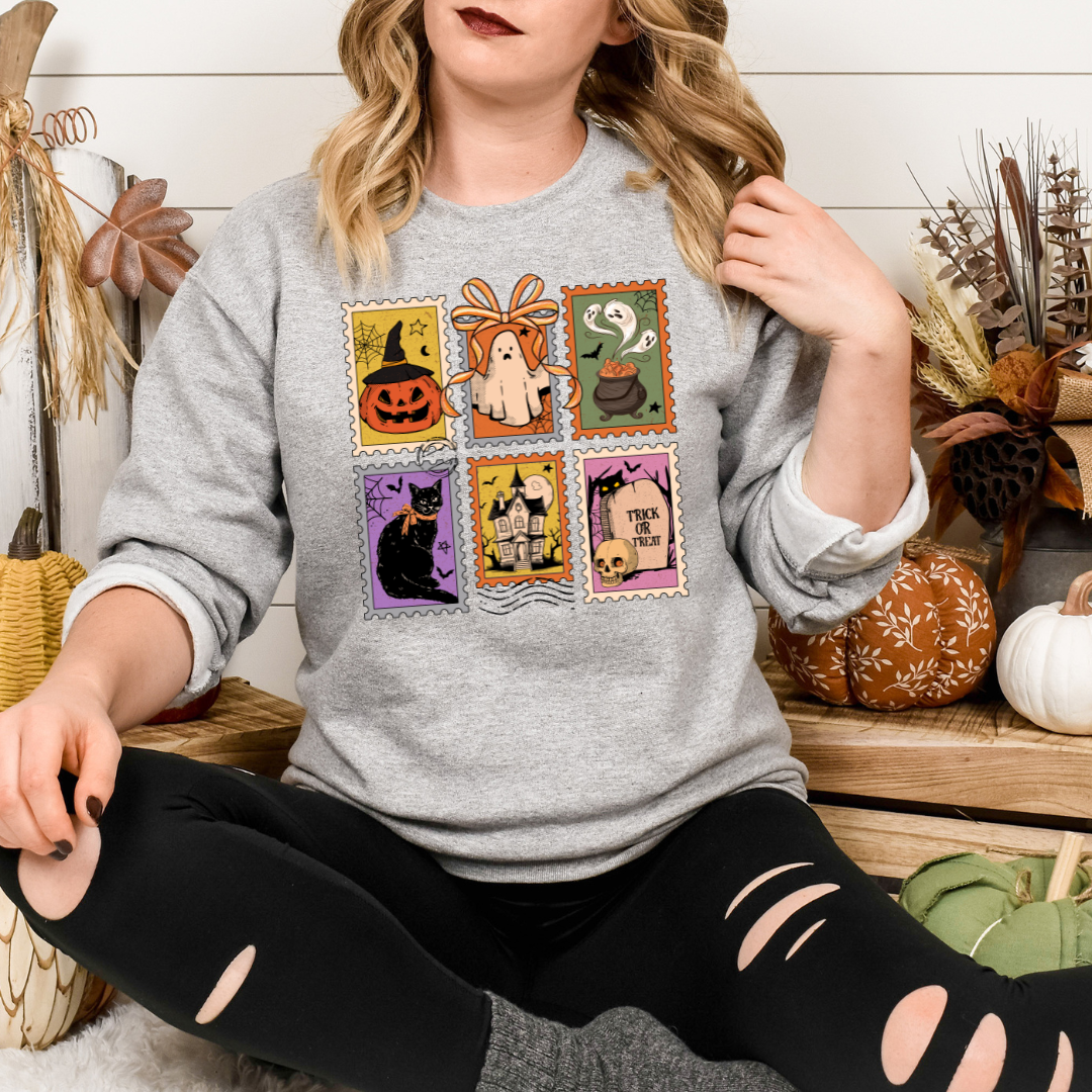 Sweatshirt halloween style timbres postaux, Crewneck d'halloween style vintage