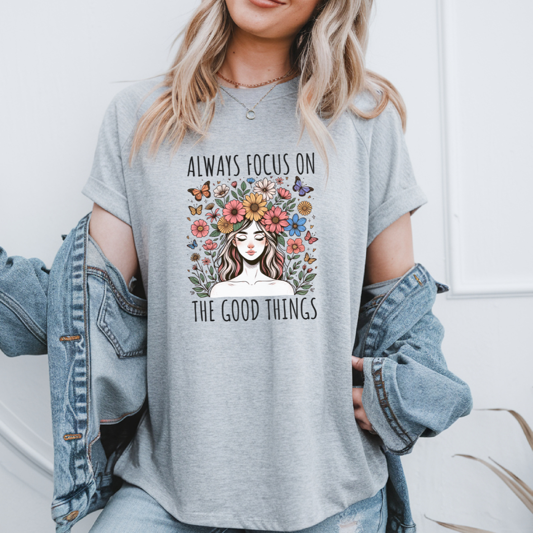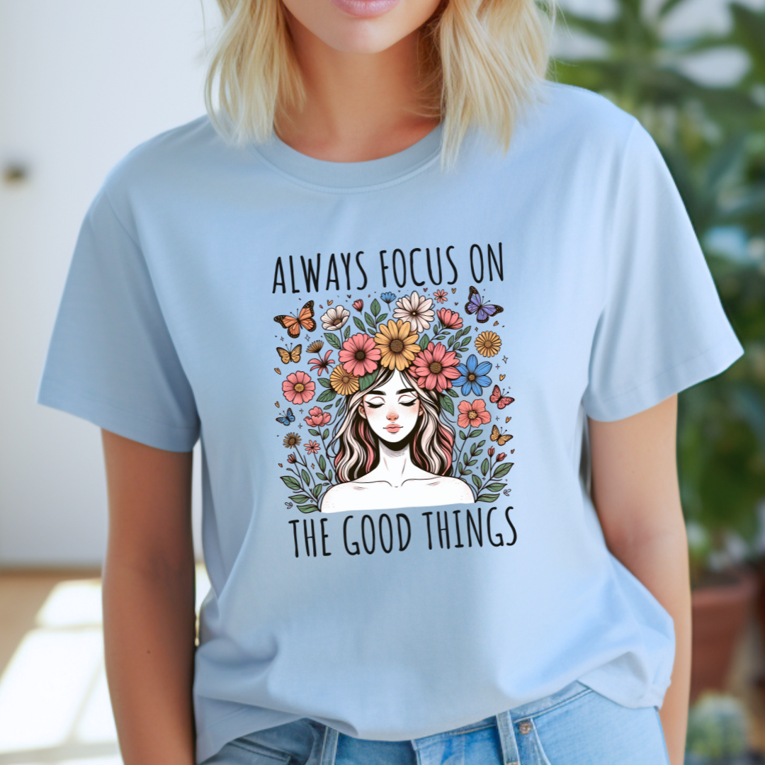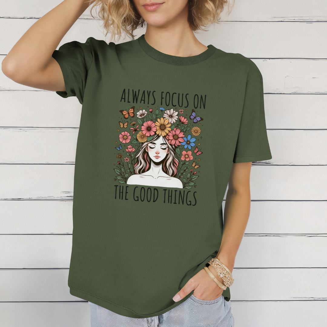 Découvrez notre T-shirt "Good Vibes" au style boho, une pièce qui allie la beauté des fleurs et la légèreté des papillons pour une dose d'inspiration quotidienne. Parfait pour elle, ce T-shirt floral est plus qu'un simple vêtement, c'est une déclaration de positivité et de bien-être mental.