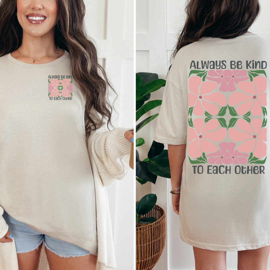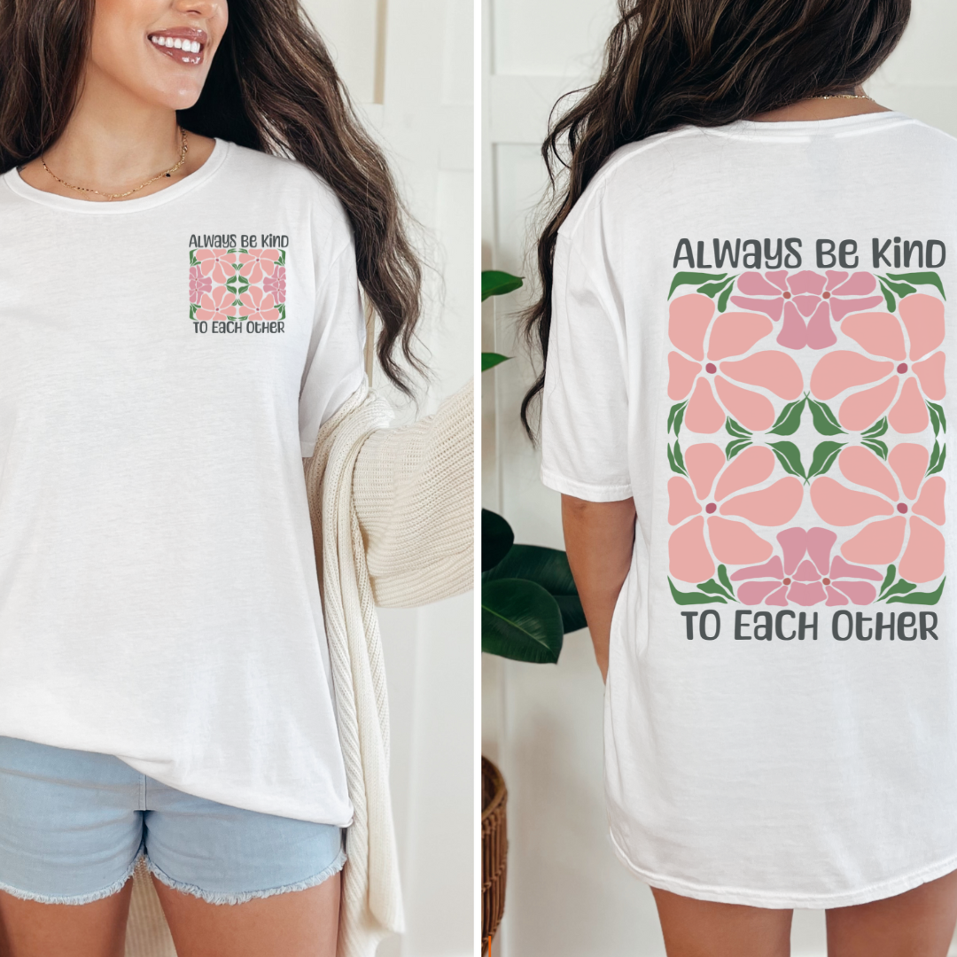 Découvrez notre T-shirt floral de style bohème avec une citation positive. Parfait pour les amoureux de fleurs, ce T-shirt botanique est idéal pour l'été, que ce soit au chalet ou à la plage. Diffusez de bonnes vibes avec ce cadeau inspirant et affirmez votre style bohème en toute saison.