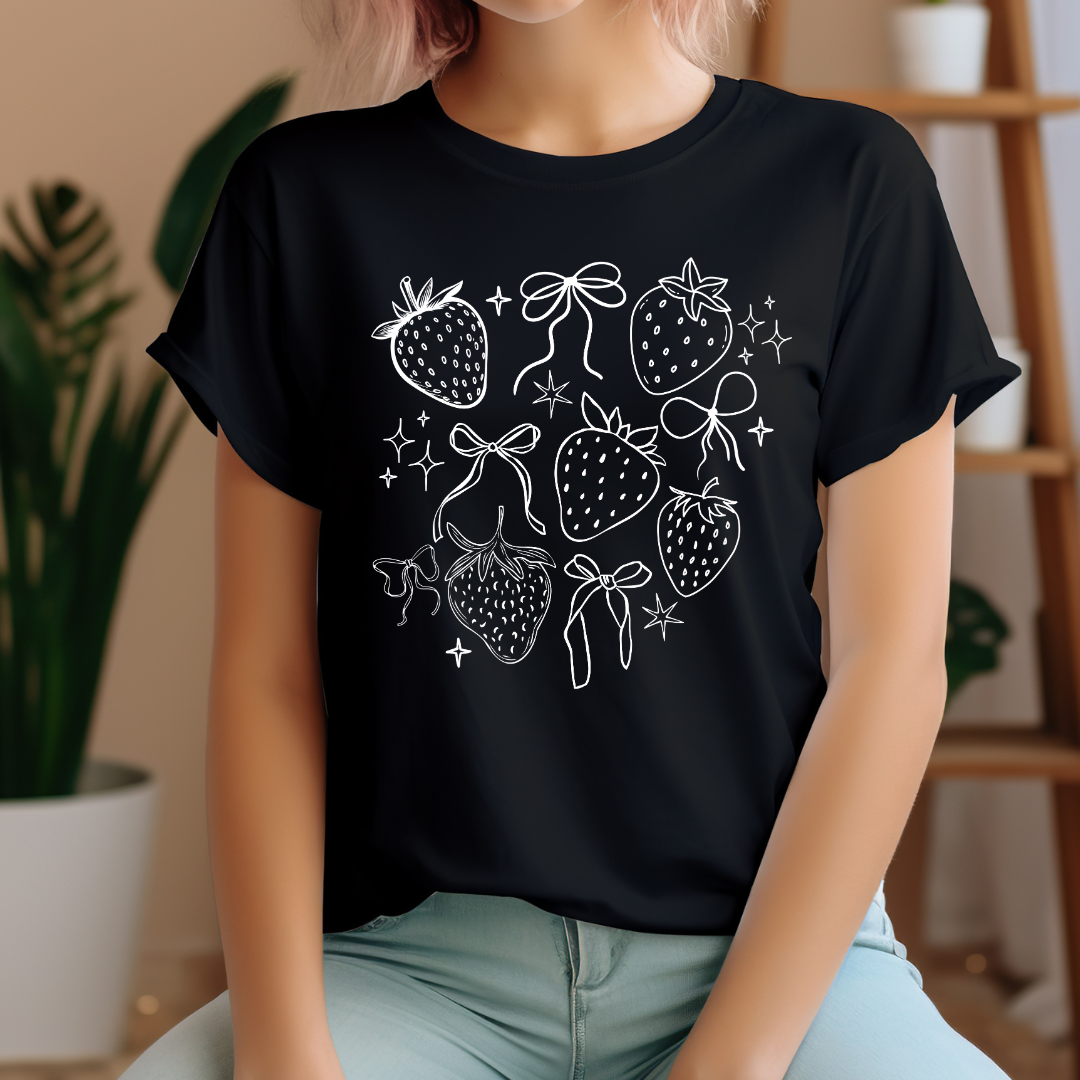 Ajoute une touche de fraîcheur et de fantaisie à ta garde-robe avec ce magnifique chandail orné d’un design exclusif de fraises et de rubans. Parfait pour les journées ensoleillées ou pour apporter un peu de douceur à ton quotidien, ce t-shirt confortable et stylé deviendra vite un incontournable.