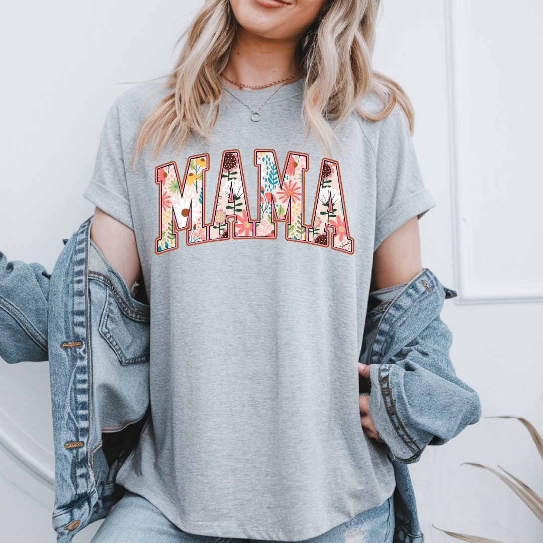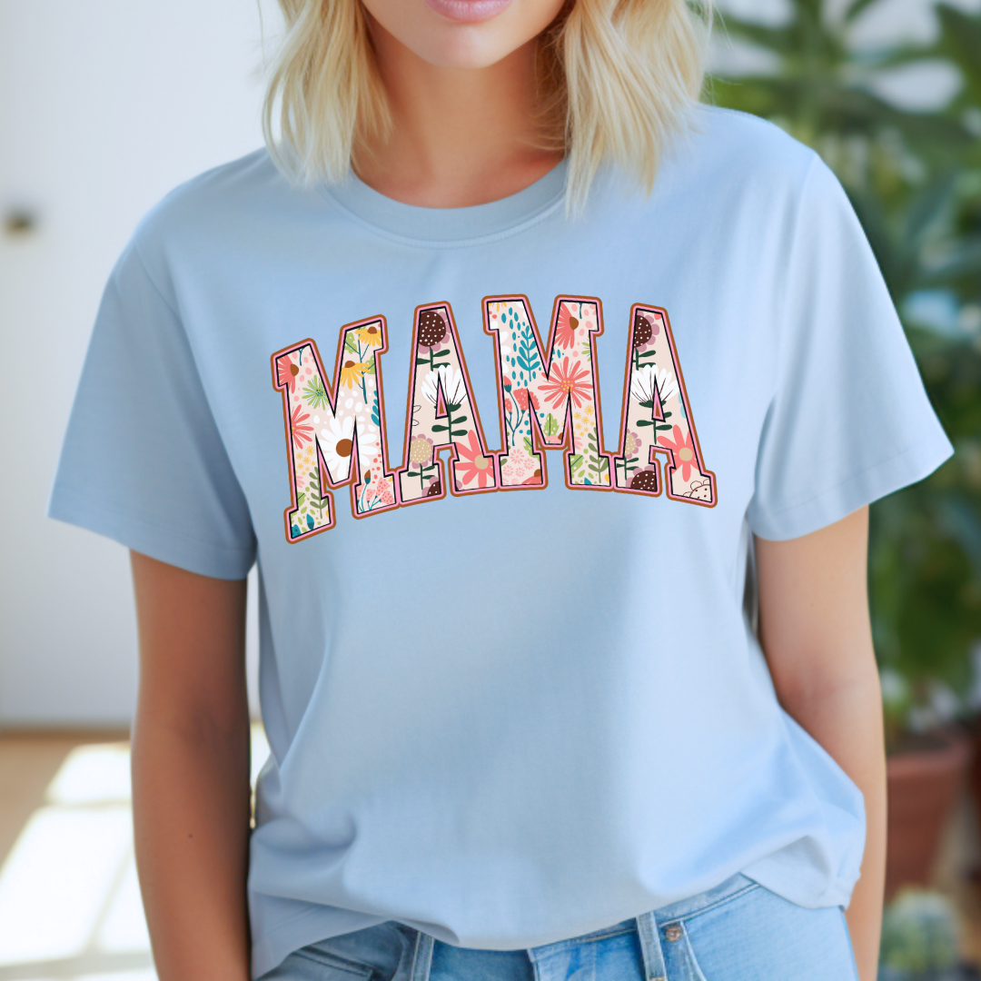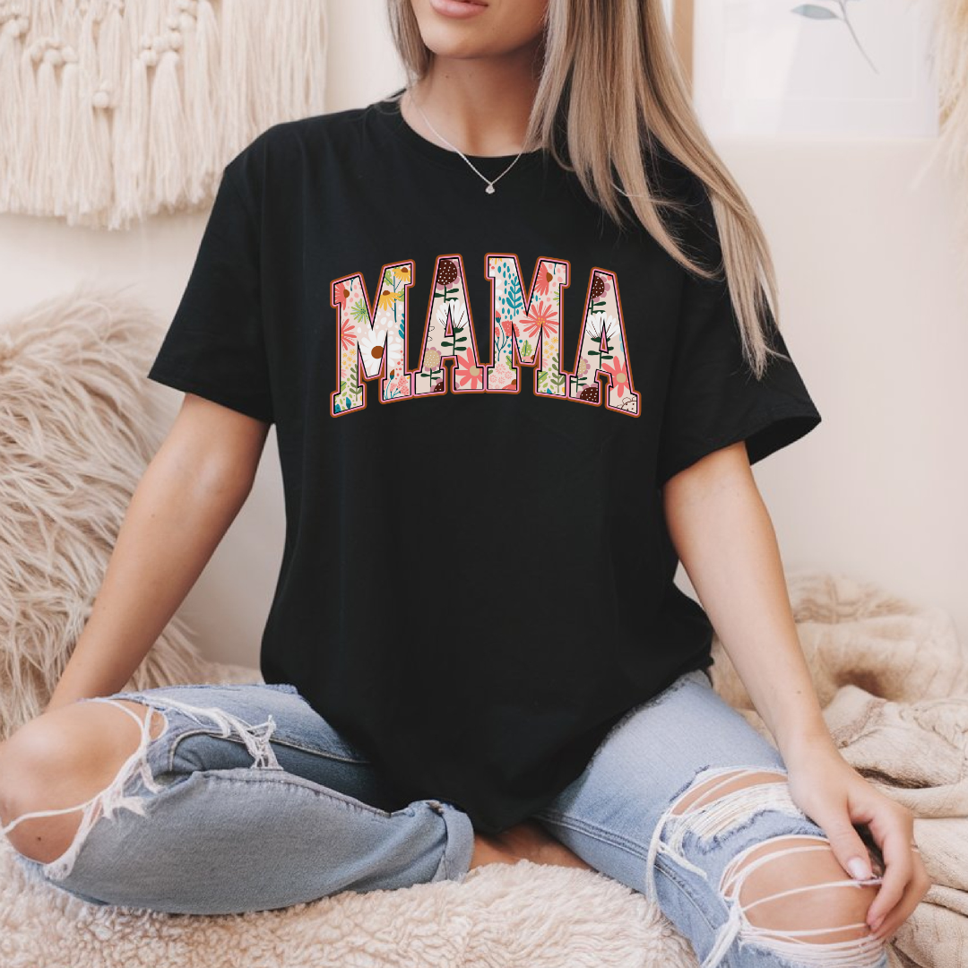 Avec son design floral et sa police de caractères Varsity rétro, ce t-shirt est un choix tendance pour célébrer la Fête des mères ou pour offrir en cadeau à une nouvelle maman. Ajoutez une touche de flair bohème à votre garde-robe avec ce T-shirt Mama qui combine parfaitement confort et style.