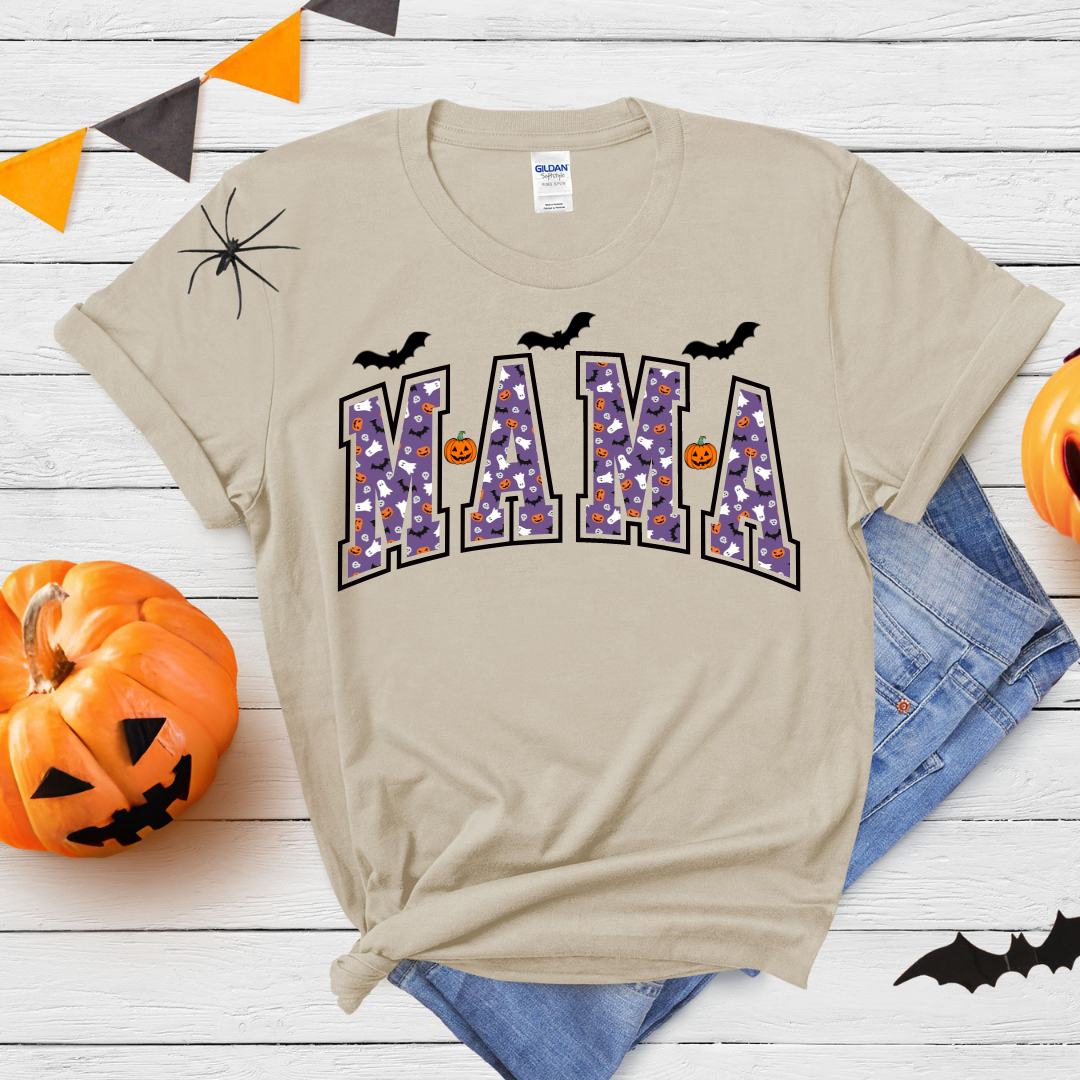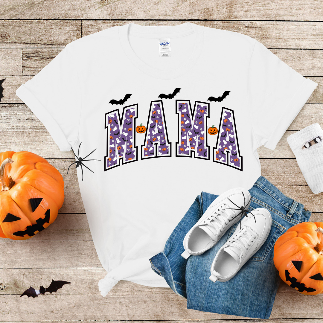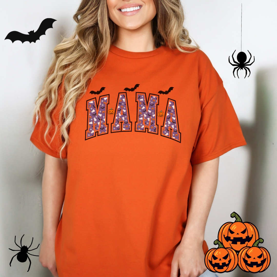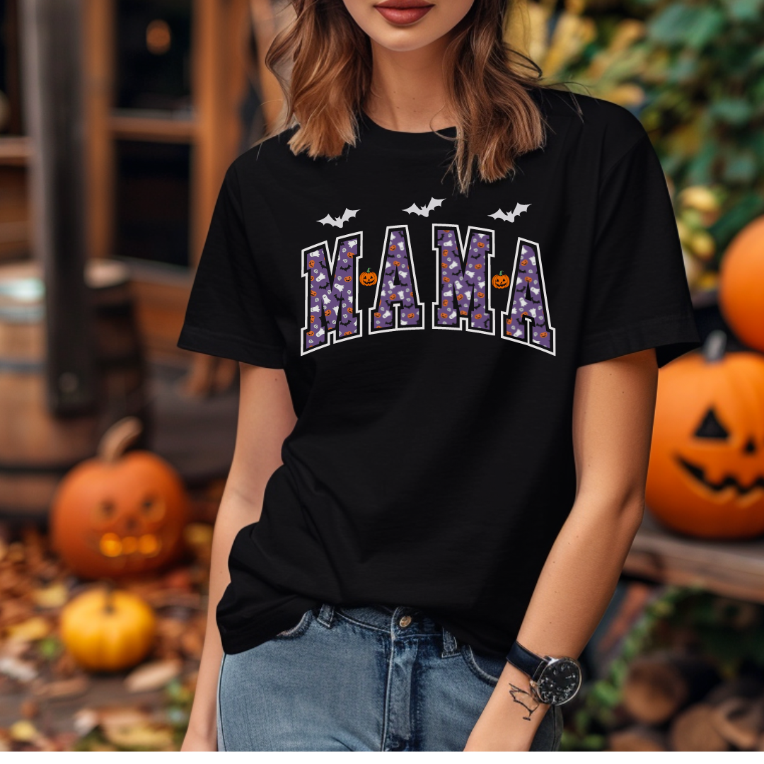 Affichez votre esprit d'Halloween avec style grâce à notre T-shirt MAMA ! Avec son inscription exclusive "Mama" et son design effrayant, ce t-shirt est parfait pour toutes les mamans passionnées par cette fête. À porter lors des soirées d'Halloween ou pour ajouter une touche amusante à votre tenue quotidienne. Soyez la star de la fête avec notre T-shirt MAMA Halloween !