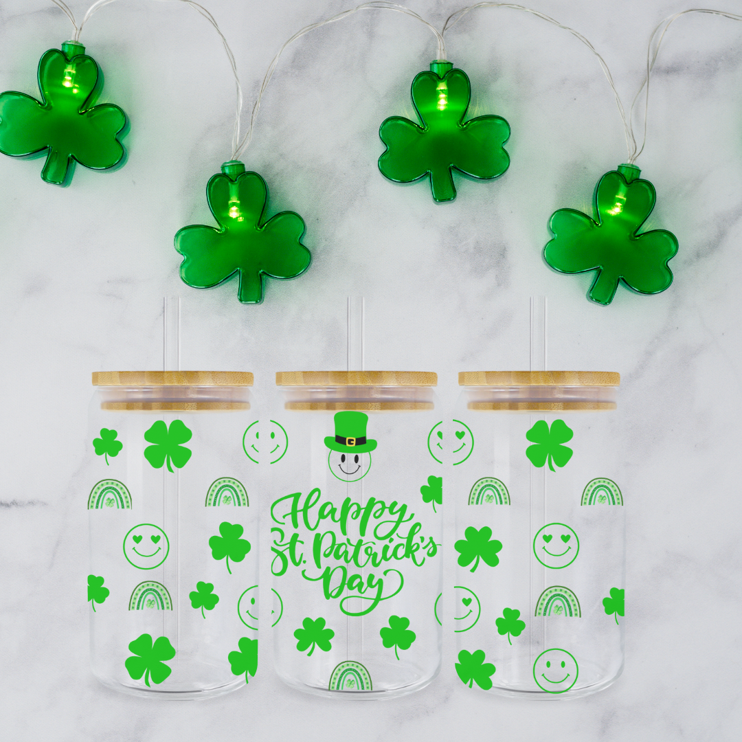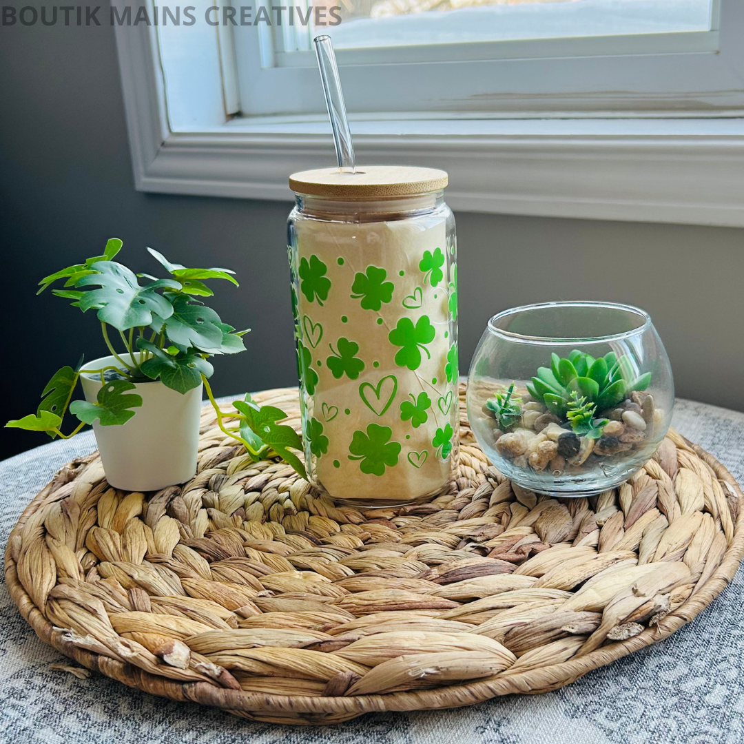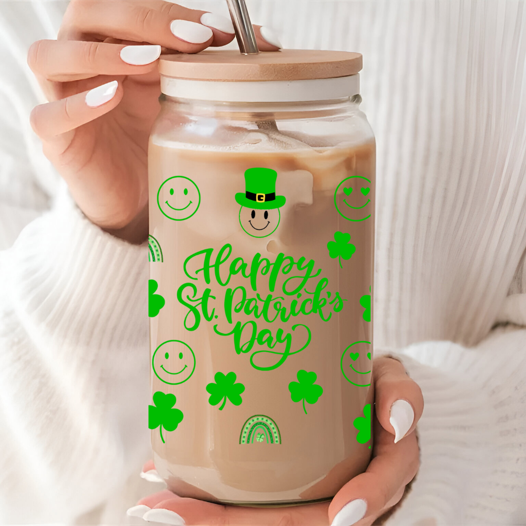 Dégustez vos boissons préférées lors de la Saint-Patrick avec notre verre polyvalent de 16 onces avec couvercle de bambou et une paille de verre! Que ce soit pour un café glacé rafraîchissant ou une bière festive, ce verre à café glacé de la Saint-Patrick est parfait pour l'occasion. Ajoutez une touche de fête à votre collection de verres avec ce gobelet pour breuvage incontournable de la Saint-Patrick. 🍀🍺