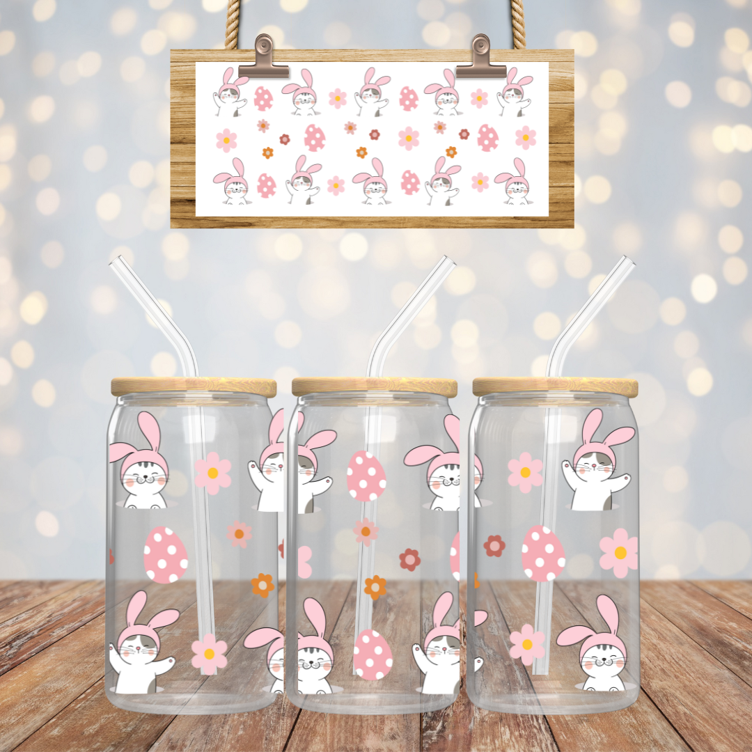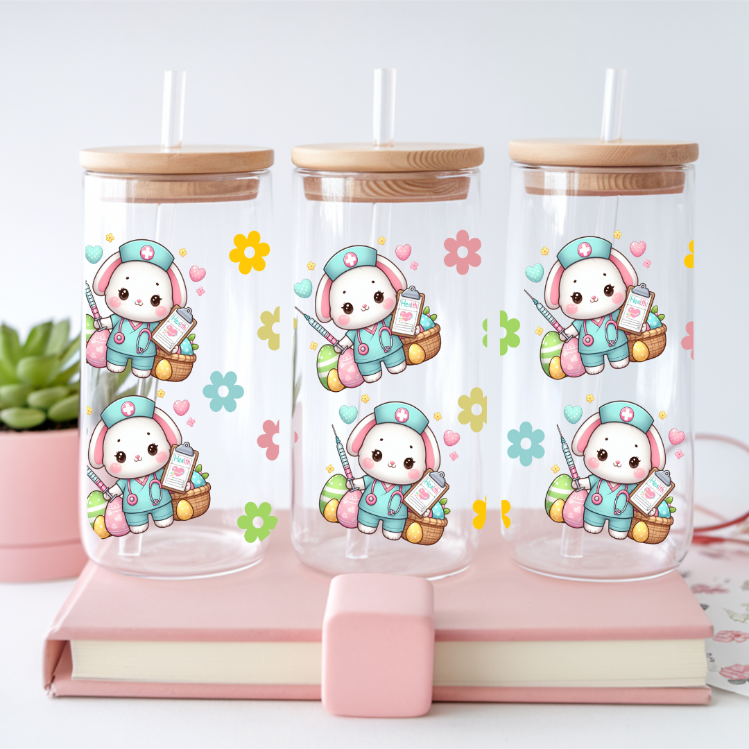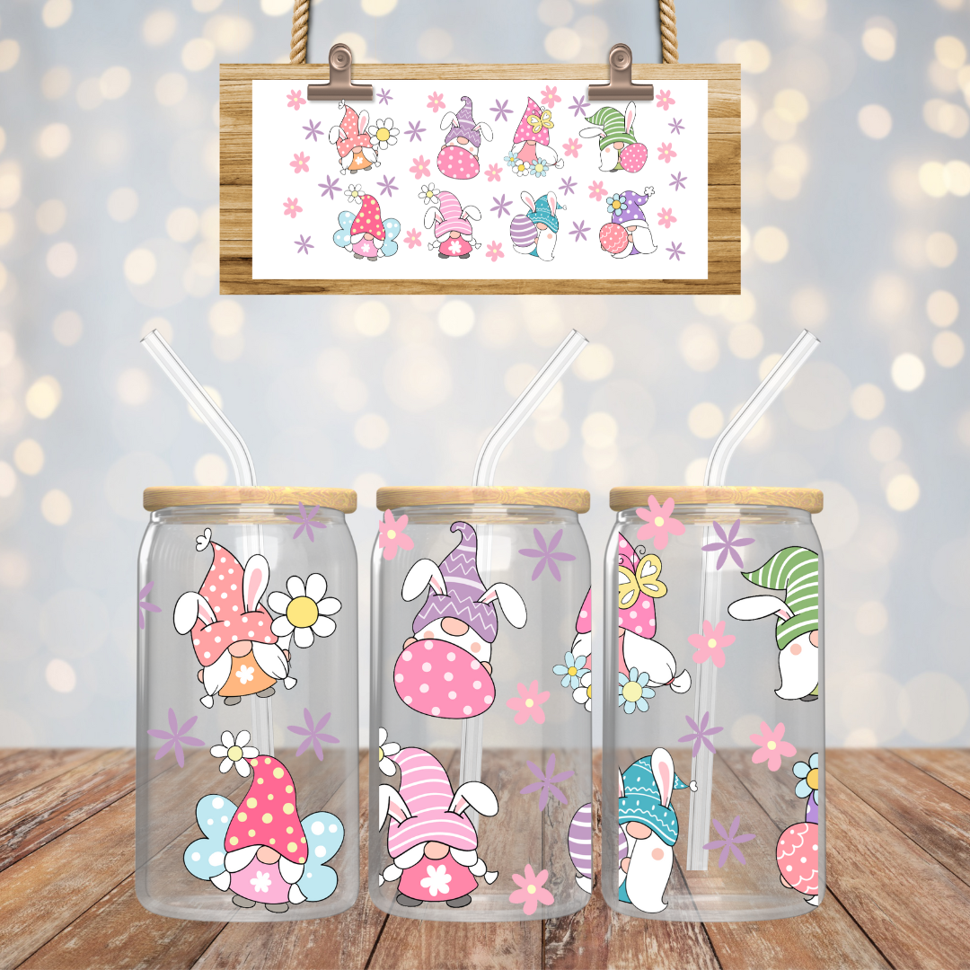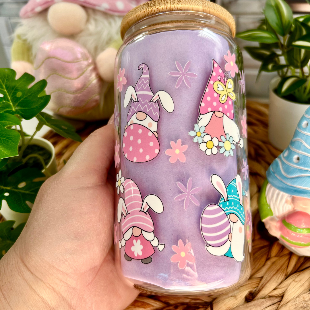 Verre à Café style Libbey can 16 oz de Pâques, design de gnomes, chats et lapin infirmière de pâques