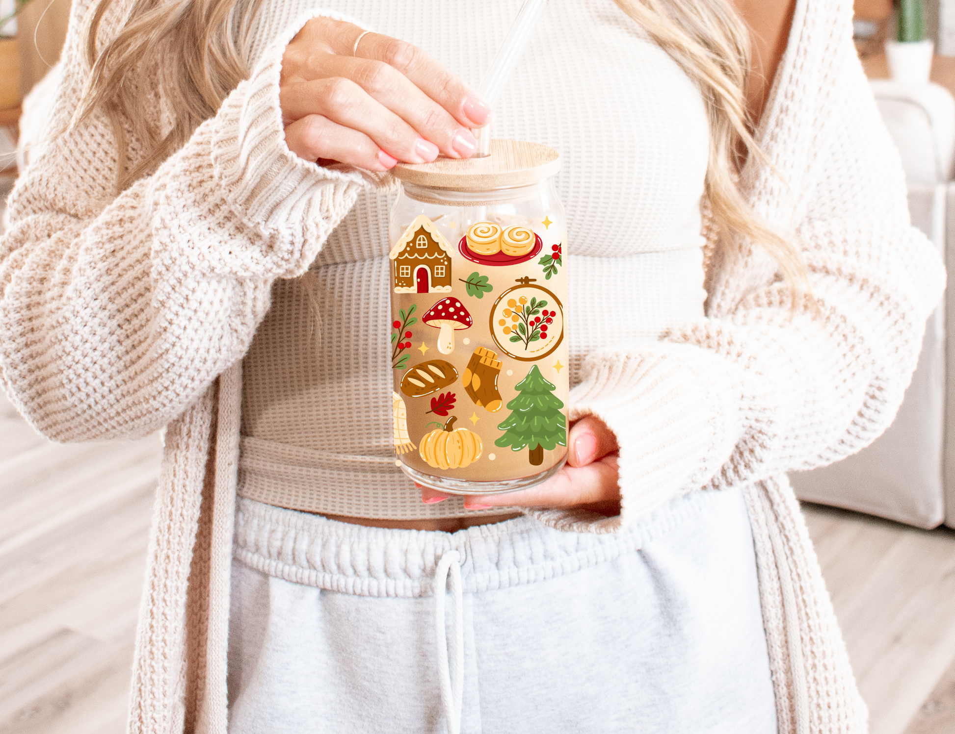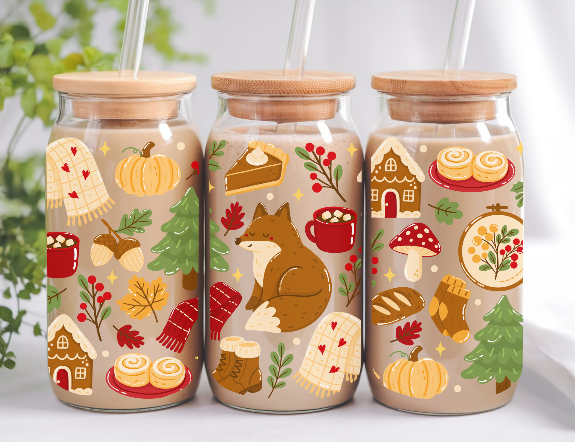 Parfait pour vos cafés glacés, thés, lattés épicés ou vos mocktails préférés, ce verre avec un Renard espiègle, citrouilles, chocolat chaud et brioches se mêlent pour créer un moment cocooning . Une idée cadeau automnal unique.
