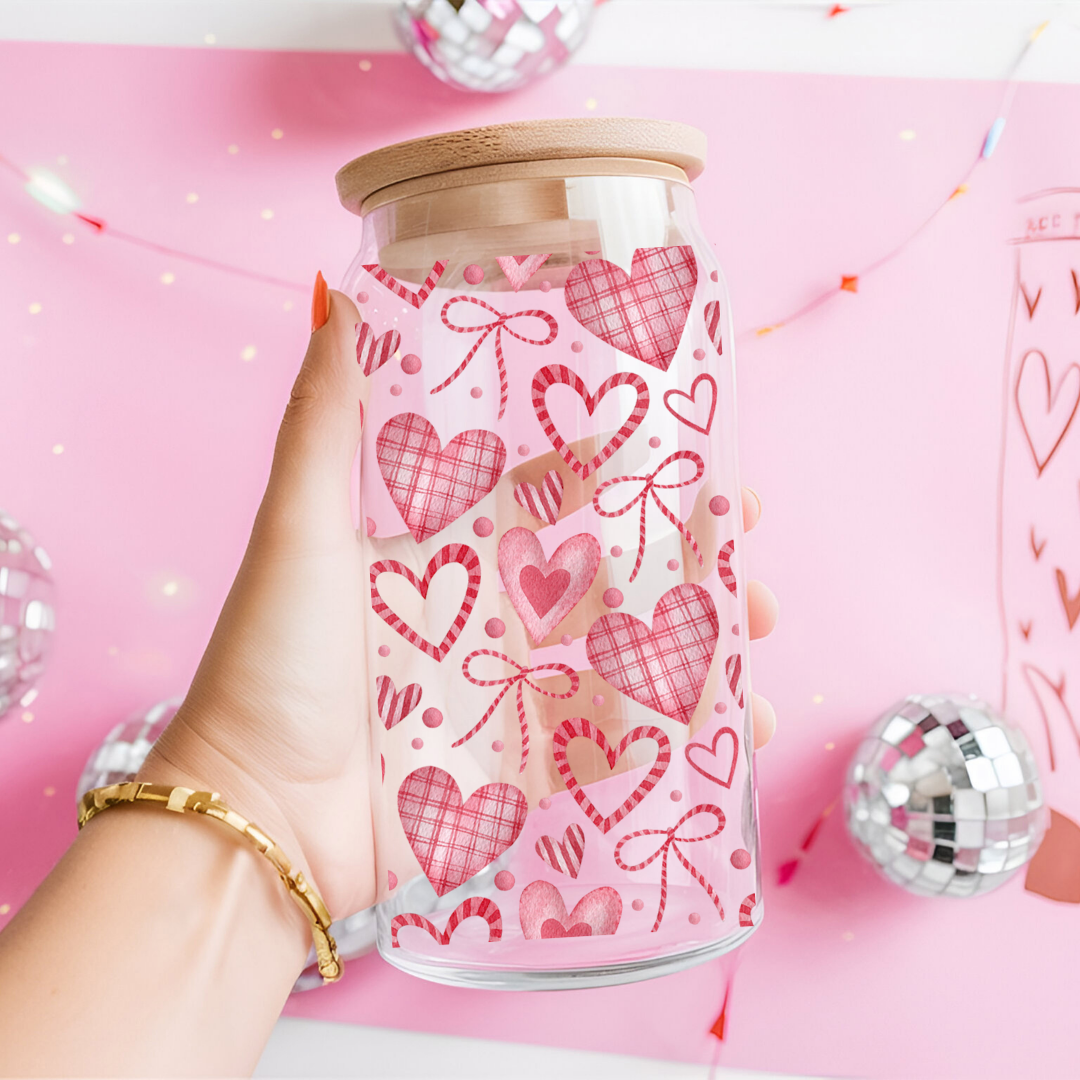 Ajoutez une touche romantique à vos moments caféinés avec ce superbe verre Libbey de 16 oz décoré de cœurs roses et de petits cœurs en tissu. Idéal pour savourer votre café glacé, votre thé, ou même une bière bien fraîche, ce verre élégant est parfait pour célébrer l’amour au quotidien ou pour offrir un cadeau mémorable à un être cher.