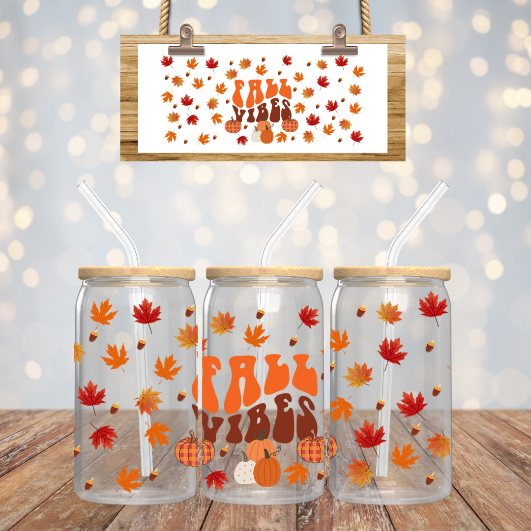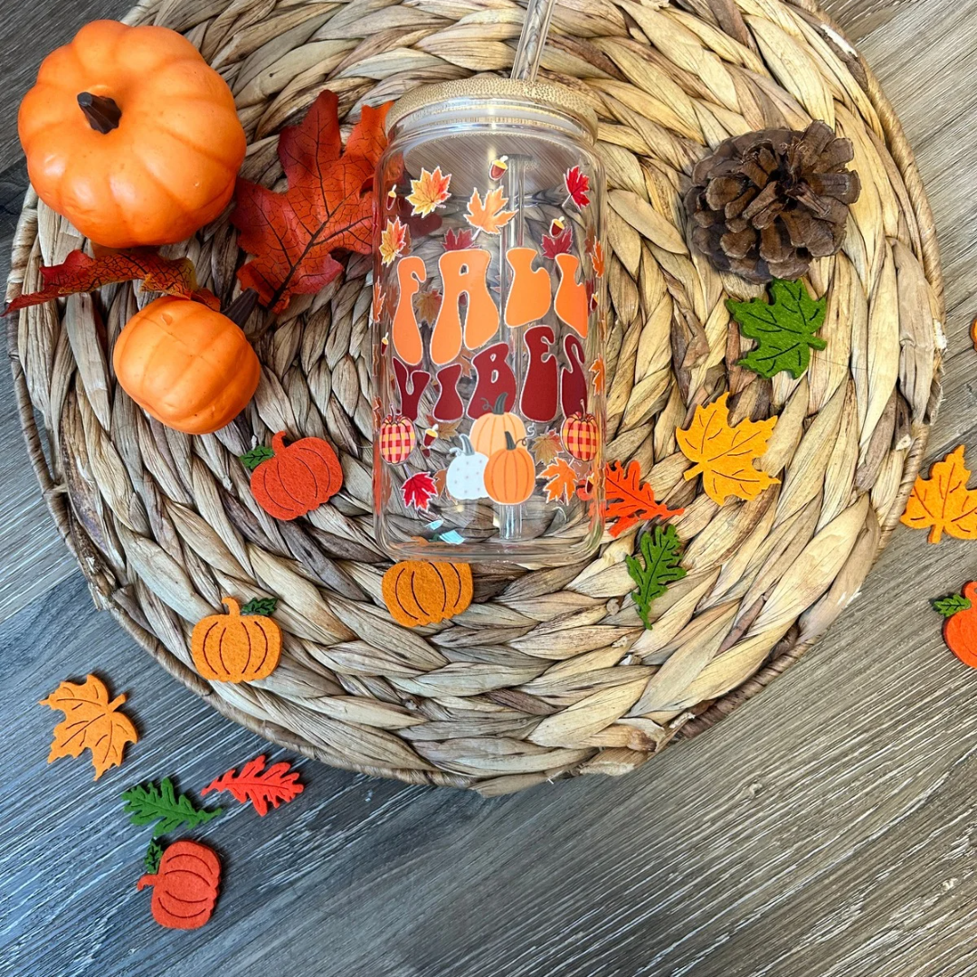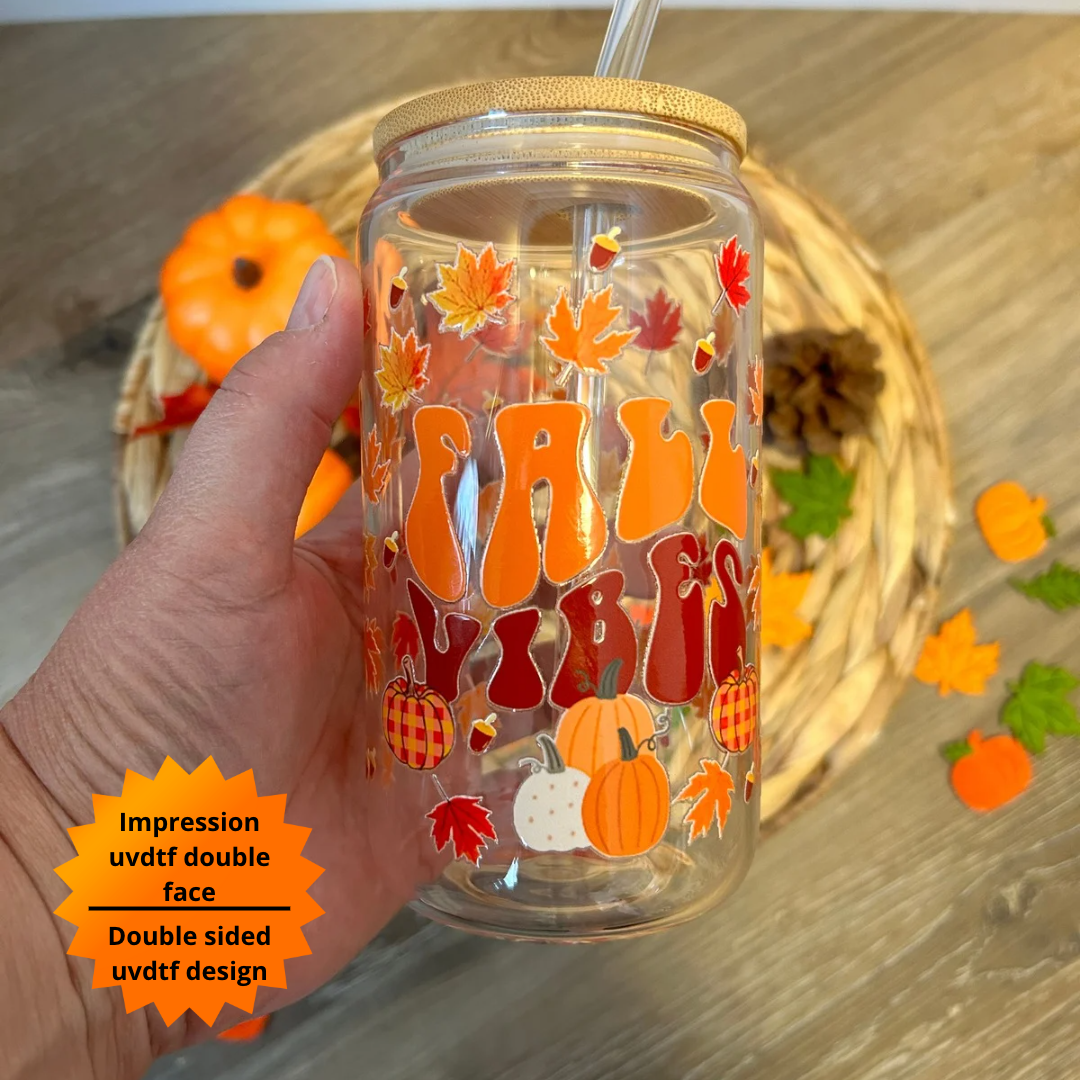Savourez votre café glacé dans notre verre à boisson froide feuilles d'automne Fall Vibes ! Avec son couvercle en bambou et sa paille en verre, vous profiterez de votre boisson tout en étant respectueux de l'environnement. Une façon amusante et écologique de célébrer la saison d'automne !
