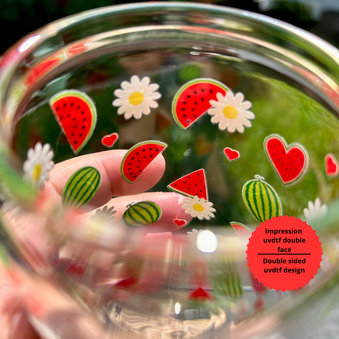 Tous les design sont conçues avec UVDTF, avec impression Double Face, méthode offrant la possibilité d'imprimer des images de haute qualité avec des détails fins et une grande précision des couleurs et durabilité.