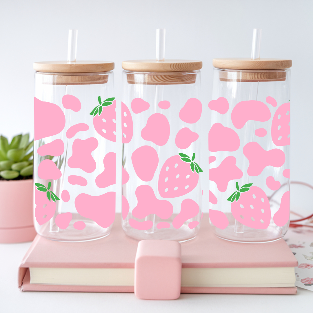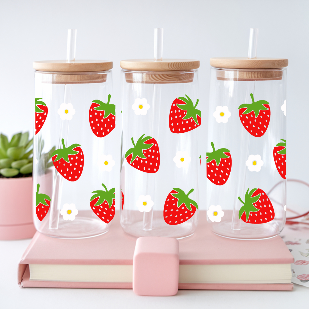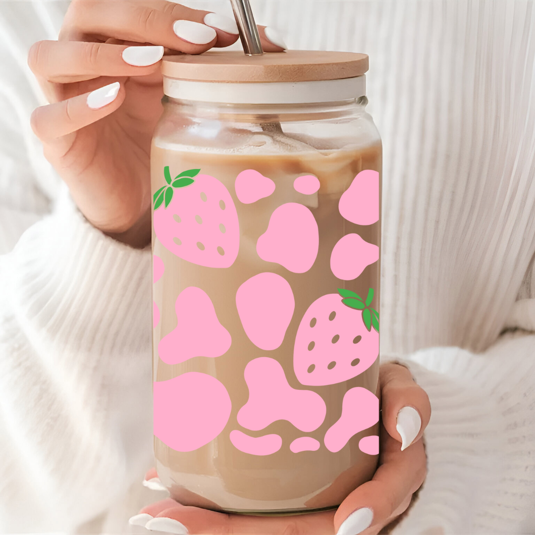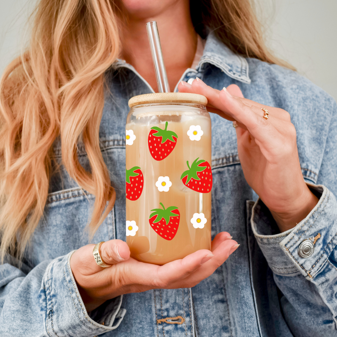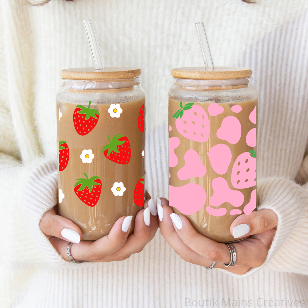 Verre à café glacé avec motifs fraises