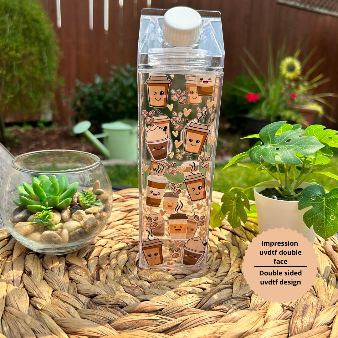 Ensemble Verre à café 16 oz et bouteille style carton lait 17 oz design café Kawaii, Kit pour amateur de café